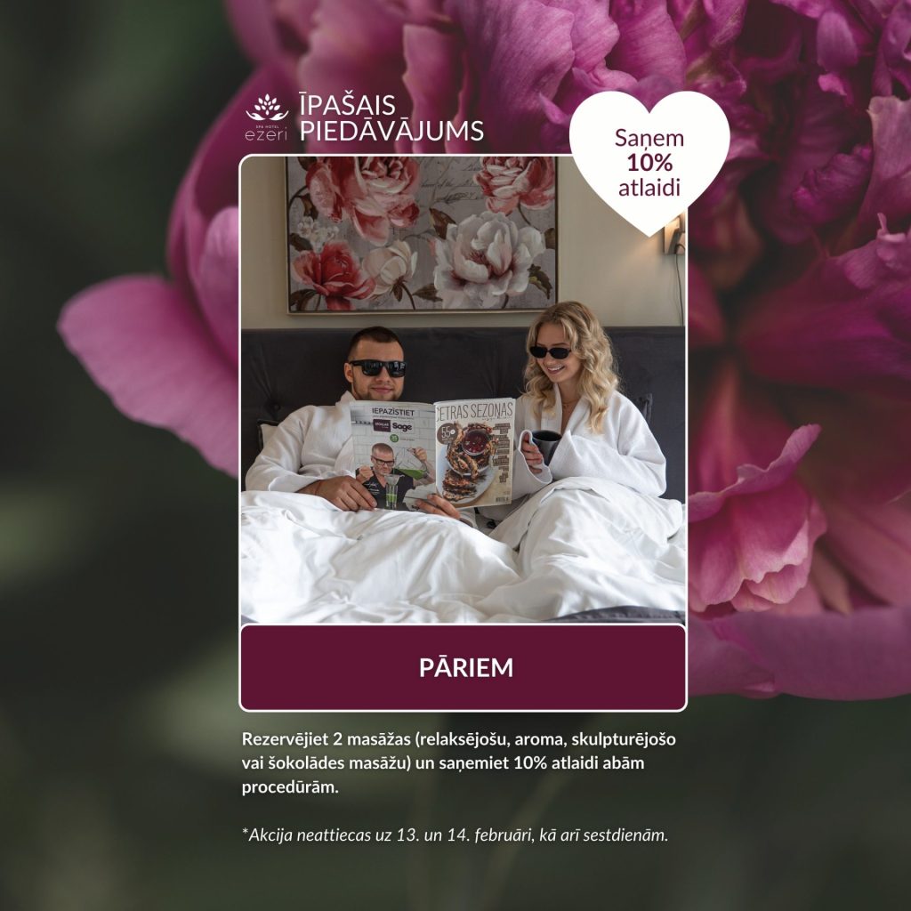 Lai skaisto mirkļu baudīšana un sevis lutināšana SPA HOTEL EZERI viesiem būtu vēl patīkamāka, esam sarūpējuši īpašus piedāvājumus bezrūpīgai atpūtai.